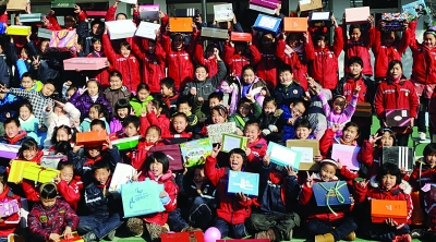 ????“鞋盒禮物”,在全世界100多個(gè)國(guó)家都舉辦過(guò),本著互動(dòng)、打破雙方隔閡的理念,倡導(dǎo)富裕家庭的孩子們自愿捐出自己的零用錢,和爸爸媽媽們一起為需要的孩子們準(zhǔn)備禮物,并用鞋盒包裝起來(lái)送給困難家庭的孩子。在七橋小學(xué)的操場(chǎng)上,高高的一摞精心打扮過(guò)的“鞋盒禮物”堆在孩子們面前,有的還用水彩筆歪歪扭扭地寫著贈(zèng)送祝語(yǔ)。這些都是南京市40多所中小學(xué)孩子準(zhǔn)備的一部分。