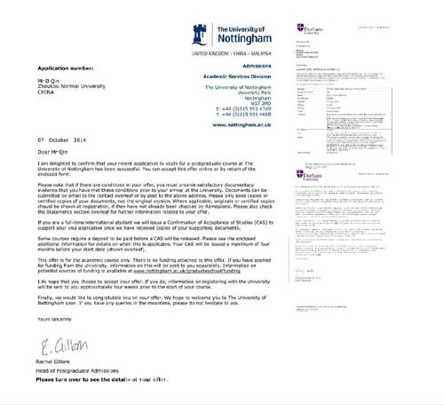 秦博杰收到的錄取通知書(shū)