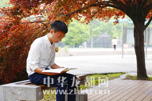 秦博杰在校園讀書(shū)
