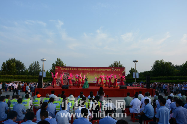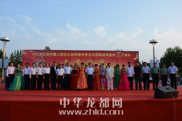 ????龍都網(wǎng)訊(記者 孫艷? 通訊員 理效明 崔海燕) 9月1日,行政新區(qū)廣場(chǎng)上人頭攢動(dòng),熱鬧非凡。由川匯區(qū)委宣傳部主辦、區(qū)文化局承辦的慶??箲?zhàn)勝利暨世界反法西斯戰(zhàn)爭(zhēng)勝利70周年文藝匯演在這里舉行。市委宣傳部常務(wù)副部長(zhǎng)陶韜及區(qū)領(lǐng)導(dǎo)郭志剛、陳朝棟、葉長(zhǎng)麗、張劍鋒、梁顯學(xué)、王琳、許四軍、李揚(yáng)、王崇山,區(qū)人武部部長(zhǎng)蘇運(yùn)才等與現(xiàn)場(chǎng)上千名群眾一起觀看了演出,共同追思中華民族抗戰(zhàn)時(shí)期那段血與火的歷史,紀(jì)念中國(guó)人民抗日戰(zhàn)爭(zhēng)和世界反法西斯戰(zhàn)爭(zhēng)勝利70周年。