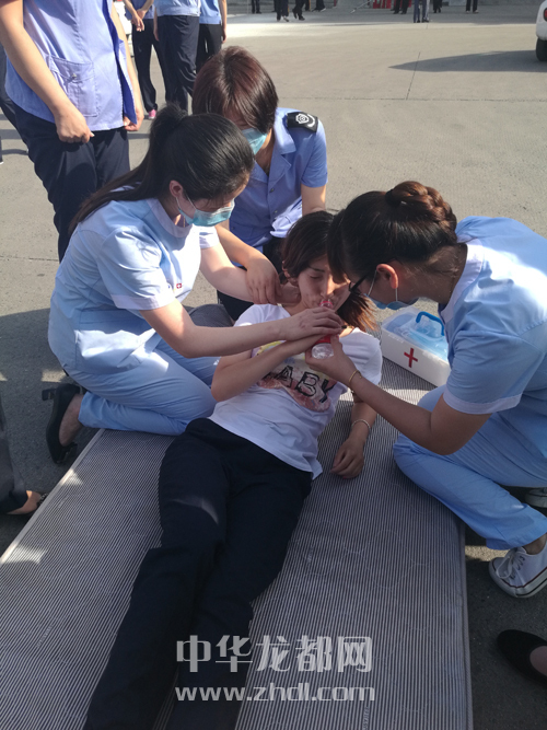 ????在模擬車站大廳發(fā)生火災(zāi)的演練中,車站值班站長第一時間撥通119、120求救,并組織工作人員幫助旅客有序撤離。車站醫(yī)療搶救組對撤離到安全地帶的受傷旅客進(jìn)行施救(如圖二)。大廳內(nèi)人員全部撤離后,救援人員手持滅火器迅速組織滅火(如圖三)。
