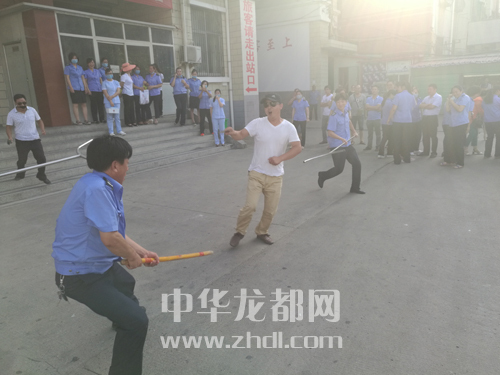 ????在防恐防暴的演練中,兩名手持兇器的歹徒在車站大廳里轉(zhuǎn)悠,車站值班站長見此情況后,想方設(shè)法穩(wěn)定住兩名歹徒,隨后一邊安排工作人員疏散候車廳內(nèi)旅客,一邊組織工作人員拿起警棒、防爆叉與歹徒進(jìn)行搏斗(如圖四)。
