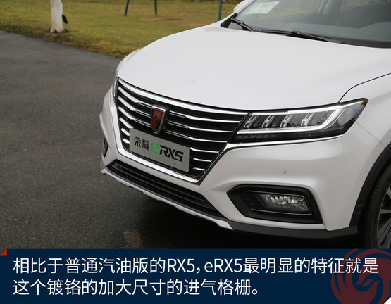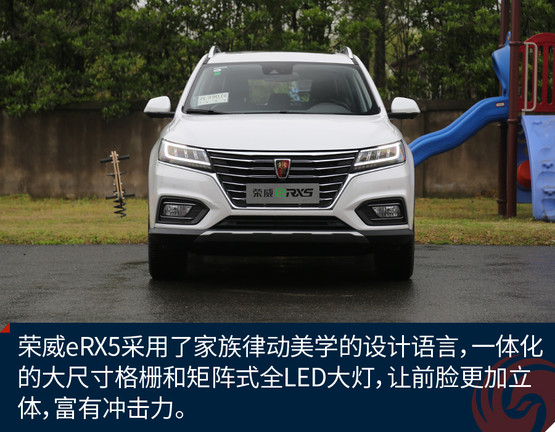 榮威eRX5的外觀設(shè)計(jì)來自于上汽榮威家族最新的“律動(dòng)設(shè)計(jì)”語言,整體外觀呈現(xiàn)出的是“鯨頭燕尾”的特點(diǎn)。通過車頭下壓、腰線勾勒、尾部內(nèi)切等設(shè)計(jì),詮釋了“律動(dòng)”的美學(xué)理念。與汽油版RX5相比,車頭的鍍鉻前格柵尺寸更加大,造型更為舒展,與大燈融為一體。eRX5基于RX5采用的SSA+平臺(tái)打造,提供了插電版與純電版兩個(gè)版本,這兩款車實(shí)際幾乎是同時(shí)開發(fā)的,尺寸方面更是一模一樣。插電版的eRX5車身兩側(cè)分別為加油口和充電口,純電動(dòng)續(xù)航60公里,綜合續(xù)航650公里。車身隨處可見新能源的標(biāo)識(shí),并且還擁有新能源的專屬顏色銀葉金。