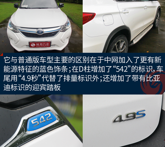 ????????外觀方面,宋DM與燃油版車型基本保持一致,其延續(xù)了X形的前臉造型設(shè)計,整個前臉時尚、運動。而在一些細(xì)節(jié)上,它與唐100一樣,都有新能源車型專屬的特征,車身D柱處還標(biāo)有比亞迪“542”標(biāo)識,并在車尾部標(biāo)有“4.9s”標(biāo)識,強調(diào)了該車型的動力系統(tǒng)較為強大。車身尺寸方面,宋DM車型的長寬高分別為4565×1870×1700毫米,軸距為2660毫米。