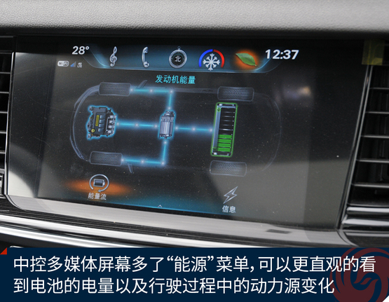 ????????中控多媒體屏幕多了“能源”菜單,點(diǎn)進(jìn)去可以更直觀的看到電池的電量以及行駛過(guò)程中的動(dòng)力源變化。