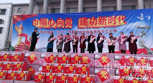 3月5日,西華縣舉辦慶“三八”婦女節(jié)脫貧攻堅(jiān)移風(fēng)易俗文藝會(huì)演,對(duì)64名優(yōu)秀女性和3個(gè)團(tuán)體進(jìn)行了表彰。記者姬慧洋攝