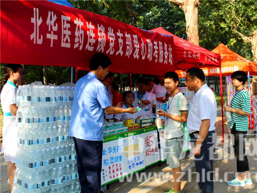 愛心助考活動現(xiàn)場,西華縣真愛醫(yī)院黨支部設(shè)立的“黨旗引領(lǐng)、護航高考”的大紅愛心助考條幅分外惹眼,黨員志愿者們免費為考生提供藿香正氣水、風油精、退燒藥等,并有醫(yī)護人員現(xiàn)場提供急救服務。在西華縣恒生醫(yī)院黨支部愛心助考點前,3名醫(yī)護人員正在免費為考生及家長提供風油精、清涼油、仁丹、藿香正氣水等防暑降溫藥品和急救藥品,還有擔架、120急救車輛等。西華縣北華醫(yī)藥黨支部愛心助考服務站的黨員志愿者,正在向考生免費提供防暑降溫藥、感冒發(fā)燒藥、拉肚子藥等藥品。黨員志愿者愛心企業(yè)代表宋女士說:“在高考期間,我們?yōu)榭忌凹议L免費提供礦泉水、芭蕉扇、清涼油等多項服務,除了愛心,更多的是一份責任和使命?!?/p>