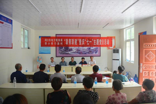 中華龍都網(wǎng)訊(周口報(bào)業(yè)全媒體記者 馬治衛(wèi) 通訊員 蘇童)為喜慶中國共產(chǎn)黨建黨97周年,夯實(shí)貧困村基層組織基礎(chǔ),促進(jìn)脫貧攻堅(jiān)工作深入開展,按照中共周口市委組織部和周口市直工委要求,6月26日上午,周口市地稅局組織相關(guān)科室負(fù)責(zé)人走進(jìn)幫扶村太康縣王集鄉(xiāng)李小村行政村開展“黨建聯(lián)幫聯(lián)建暨慶七一主題黨日”活動(dòng)。這是該局在幫扶村“兩委”成功換屆之后第一次舉辦主題黨日活動(dòng),市、縣、鄉(xiāng)各級(jí)領(lǐng)導(dǎo)及駐村工作隊(duì)和幫扶村30余名黨員代表參加了此次活動(dòng)。