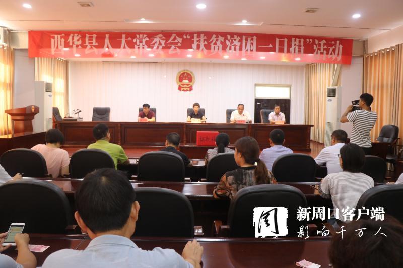 7月19日,西華縣人大常委會機關組織開展“扶貧濟困一日捐”活動,縣人大常委會主任周曉燕,副主任張國玉、王心坎、龐有敬出席活動。