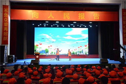 在當(dāng)天的會議上,全體與會人員首先集中觀看了短片《向人民報告》,詳細(xì)全面地總結(jié)回顧了“代人民管理城市”理念實施一年來的工作,對上年度民意調(diào)查結(jié)果和城市管理成果向人民進(jìn)行報告,對今年度的民意調(diào)查進(jìn)行分析研判,對下一步城市管理工作進(jìn)行了安排部署,并對城市管理先進(jìn)單位、環(huán)衛(wèi)工作先進(jìn)單位、優(yōu)秀環(huán)衛(wèi)工人、城市管理工作先進(jìn)個人進(jìn)行表彰。