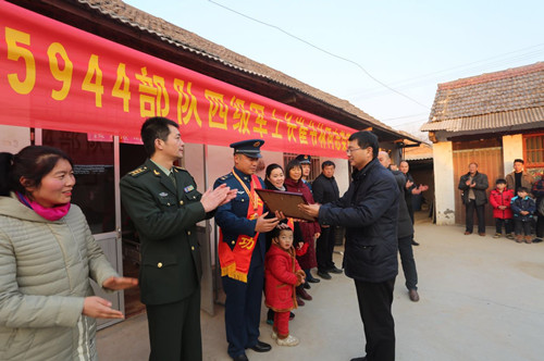 軍地聯(lián)手鑼鼓喧天送喜報(bào),功臣家人披紅戴花受尊崇??战当娔巢渴翘丶?jí)英雄黃繼光生前所在部隊(duì),今年以來(lái),先后有4名周口籍官兵在各類(lèi)重大演訓(xùn)任務(wù)中立功受獎(jiǎng),為了使軍人的榮譽(yù)向官兵家庭拓展、向全社會(huì)輻射,該部決定開(kāi)展“功耀門(mén)楣送喜報(bào)進(jìn)家門(mén)”活動(dòng),利用12月14日、15日兩天時(shí)間,選派專(zhuān)人成立“報(bào)喜”小分隊(duì),為我市4名官兵家庭送去立功喜報(bào)和慰問(wèn)金。