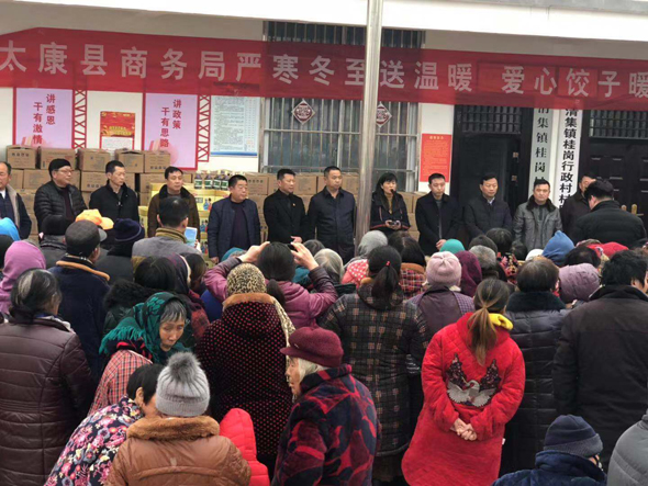 12月21日下午,冬至前夕,太康縣副縣長喬偉、縣商務局局長李曉紅,清集鎮(zhèn)黨委書記吳文靜,帶著對貧困群眾的關心、關愛,到太康縣清集鎮(zhèn)張子影行政村、桂崗行政村開展嚴寒冬至送溫暖,愛心餃子暖人心扶貧慰問活動。