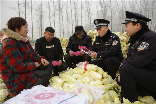 歲末年初正是電信詐騙、入室盜竊等各類侵財(cái)案件高發(fā)期。為提高群眾的治安防范意識(shí),連日來,扶溝縣公安局呂潭派出所民警來到田間地頭,為農(nóng)戶講解治安防范知識(shí),幫助農(nóng)戶提高識(shí)別電信詐騙技能。圖為12月25日,民警正在為菜農(nóng)解答電信詐騙防范疑難問題。