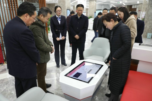 調(diào)研組一行首先來到商水農(nóng)商銀行陽城支行查看“普惠+數(shù)字”銀行建設情況。陽城支行行長簡要介紹該網(wǎng)點基本情況、服務理念后,引導調(diào)研組一行依次參觀了普惠授信服務區(qū)、數(shù)字智能服務區(qū)、電子銀行體驗區(qū)、保管箱服務區(qū)、貴金屬服務區(qū)等特色功能區(qū),并詳細介紹了每個功能區(qū)的作用和特點。調(diào)研組一行現(xiàn)場體驗了智能導覽臺 、客戶互動桌等智能設備,對該網(wǎng)點定位準確、理念前衛(wèi)、設備先進、功能齊全、分區(qū)合理,為客戶提供全方位的金融服務表示贊賞。