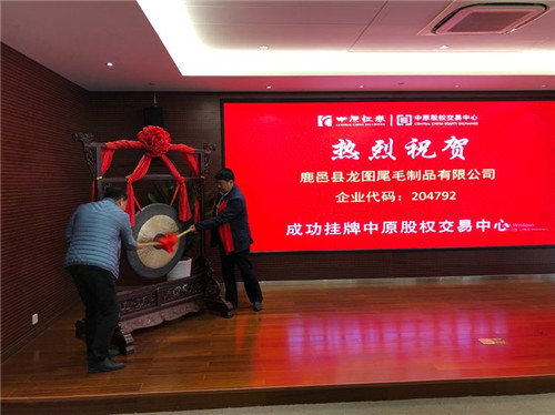 儀式上,中原股權(quán)交易中心副總裁高東、中原證券周口分公司李暉同志以及縣領(lǐng)導(dǎo)陸志杰分別致辭并為企業(yè)敲鑼授牌,鹿邑縣億鑫源毛業(yè)謝邵鋒同志代表企業(yè)發(fā)言。