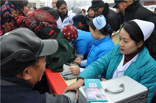 正在排隊量血壓的馬河村村民馬長運說:“我今年70多歲,血壓有點高,聽說這 里有義診活動,一大早便來這里等待了。”
