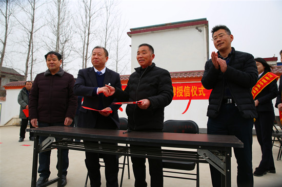 崗趙村是周口市行政服務(wù)中心幫扶的貧困村。去年11月份,駐村第一書記李文杰得知西華廈農(nóng)商村鎮(zhèn)銀行已開始在村一級評定設(shè)立“鄉(xiāng)村振興示范點”,立即與該行負責人取得聯(lián)系、積極溝通。銀行方面經(jīng)過認真考察,最終確定在崗趙“設(shè)點”。25日在崗趙村部舉行的授牌授信儀式上,西華縣人民銀行有關(guān)負責人為崗趙村授予“鄉(xiāng)村振興示范點”牌匾,西華廈農(nóng)商村鎮(zhèn)銀行負責人與崗趙村負責人簽訂了授信協(xié)議書。周口市行政服務(wù)中心和葉埠口鄉(xiāng)政府負責人都熱情致辭,百余名村民代表見證了這一激動人心的時刻。準備做早餐生意的村民趙合成說:“咱農(nóng)民貸款也不用再跑冤枉路、花冤枉錢,這個‘點’設(shè)得真中!”
