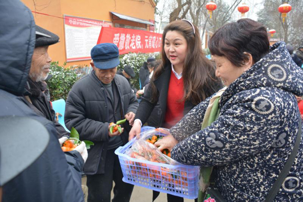 據(jù)了解,此次開展“愛灑敬老院、元宵暖心田”公益活動的發(fā)起人,是剛剛獲得商水縣“道德模范”的愛心人士劉玉英。劉玉英是一名中共黨員,她早年外出務(wù)工,近幾年返鄉(xiāng)后任職某保險公司。經(jīng)常關(guān)愛留守兒童和老人、對親戚鄰居慷慨相助,她還加入了“周口義工”團隊,踴躍參加當(dāng)?shù)亍笆∵\會”“殘運會”義務(wù)服務(wù)活動?!耙粋€人的愛心是有限的,這次自愿報名參加人員都是愛心企業(yè)家,盡管他們工作都很忙,一聽說要去敬老院給老人送元宵都親自來了?!眲⒂裼⒔榻B說,“我們帶來了精心挑選的6件黑芝麻水果元宵、4件蘋果、4件砂糖橘、2件柚子、4件香蕉、2件雪梨,還有市區(qū)‘亨達果品’水果店老板獻愛心捐贈的一箱西瓜,盡管這些東西價值只有1000多元,但畢竟是大家的一片心意!”