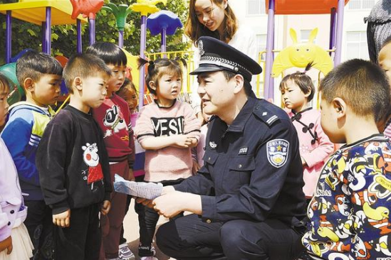 5月10日,扶溝縣公安局汴崗派出所民警走進轄區(qū)幼兒園,向小朋友介紹地震逃生技巧、火災(zāi)預防措施和火災(zāi)報警常識等,提高了小朋友應(yīng)急自救互救能力。 記者 謝永靜 通訊員 李龍喜 攝