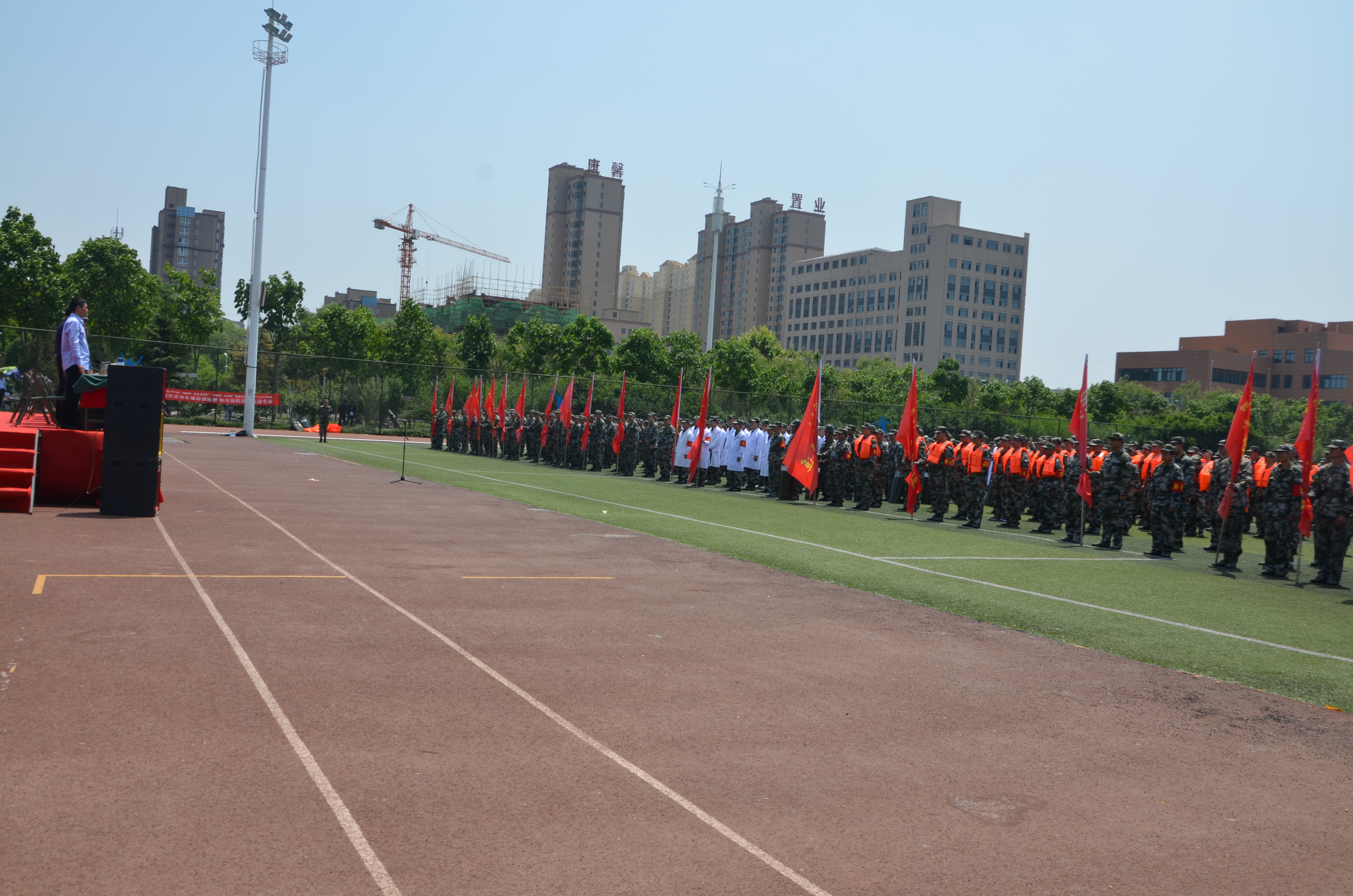 5月10日上午,沈丘縣體育場上紅旗招展、隊(duì)列整齊,民兵同志全副武裝、精神抖擻。綜合應(yīng)急分隊(duì)、防汛抗洪分隊(duì)、應(yīng)急防爆分隊(duì)、醫(yī)療救護(hù)分隊(duì)和22個鄉(xiāng)鎮(zhèn)民兵應(yīng)急排近千名基干民兵參加了沈丘縣2019年基干民兵集中點(diǎn)驗(yàn)暨開訓(xùn)動員大會。