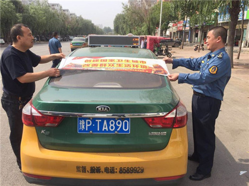 由區(qū)五城聯(lián)創(chuàng)指揮部牽頭,組織區(qū)城管局、區(qū)交通運輸局等職能部門,利用城管執(zhí)法車輛、環(huán)衛(wèi)保潔車輛、交通執(zhí)法車等,統(tǒng)一張貼宣傳標語進行宣傳。日出動各類宣傳車輛109輛。區(qū)五城聯(lián)創(chuàng)指揮部辦公室會同區(qū)交通運輸局在中心城區(qū)出租車上統(tǒng)一張貼創(chuàng)衛(wèi)宣傳標語和禁煙標志,累計張貼出租車600余輛。多種載體宣傳。利用車體標語、車載音響、大喇叭、出租車頂燈等載體,大密度宣傳創(chuàng)衛(wèi)標語口號,播放統(tǒng)一灌制的創(chuàng)衛(wèi)宣傳音頻。