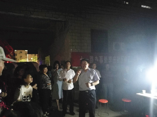 5月21日晚8時,區(qū)委書記李宗喜、區(qū)政協(xié)副主席梁顯棟、高新區(qū)管委會主任李翔與七一路辦事處負(fù)責(zé)人一起,來到位于交通路和工農(nóng)路交叉口附近的陽光嘉苑小區(qū),與居民們就創(chuàng)衛(wèi)工作進行面對面的交流。