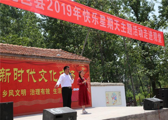 “這戲唱的真帶勁!聽得真癮!”雖然演出已經(jīng)結(jié)束,但郭窯村75歲的村民郭思勤依然坐在原地,久久不愿離去。 據(jù)悉,為確?!翱鞓沸瞧谔臁敝黝}活動取得實效,鹿邑縣委宣傳部、統(tǒng)戰(zhàn)部高度重視,統(tǒng)籌各種資源,動員全縣文聯(lián)和文藝八大協(xié)會等各方力量,創(chuàng)新活動載體,豐富活動形式,不斷深化群眾性精神文明創(chuàng)建活動,培育和踐行社會主義核心價值觀,不斷增強群眾的幸福感和獲感。鹿邑縣委宣傳部社宣科負責(zé)人寧偉在現(xiàn)場表示:“我們今年精心準(zhǔn)備了40場文藝大餐,每周都會組織文化、科技、醫(yī)療等戰(zhàn)線上的志愿者下鄉(xiāng)進村進行文藝演出、開展志愿服務(wù),讓基層的文化活動更加豐富多彩,讓群眾在家門口就能享受到更多貼心的服務(wù)。”
