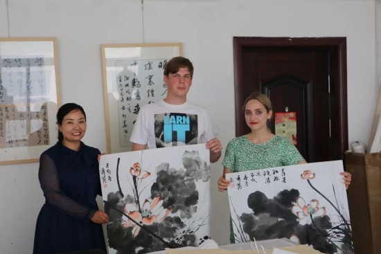鹿邑本土畫家劉龍飛畫的花鳥栩栩如生引起俄羅斯青年畫家們的嘖嘖稱嘆。兩位青年畫家通過翻譯告訴記者,中國畫歷史悠久、博大精深,看到兩位老師的畫作形神兼?zhèn)洌瑲忭嵣鷦?,真是不虛此行,感謝贈送的佳作,他們一定珍藏。據(jù)悉,本次活動他們將以國際藝術(shù)志愿者的身份、以西方人的視角描繪老子故里的美景,他們走進(jìn)明道宮、太清宮等景點實地寫生,并走美術(shù)學(xué)校為孩子們輔導(dǎo)繪畫并帶來世界名校的繪畫理念。