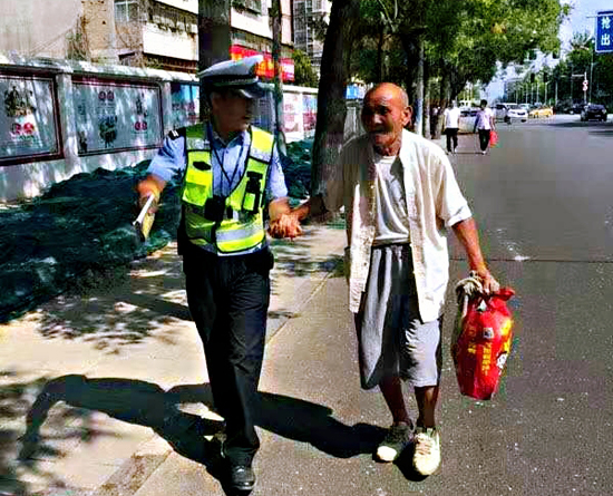 扶老人過馬路 執(zhí)勤民警平凡舉動暖人心