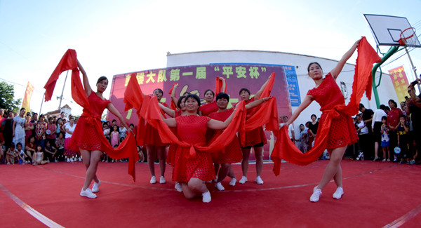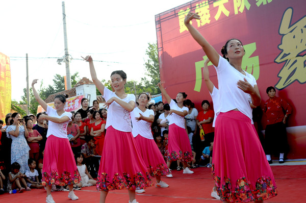 為了把節(jié)目辦的出彩,村民們非常認(rèn)真,不僅動員老少婦女們參與排練,晚上吃過飯?jiān)诖暹呉槐楸榈木?,直到能熟練上場,另外,他們還請來劇團(tuán)的演員當(dāng)評委,每場精彩的演出,博得大伙叫好聲。評委也被邀上臺 ,臨場助興,多才多藝的村民也見縫插針地表演一番才藝,一場村頭廣場舞大賽有聲有色,笑聲連連,展示了農(nóng)民在奔小康道路上的自信、幸福和執(zhí)著。