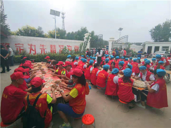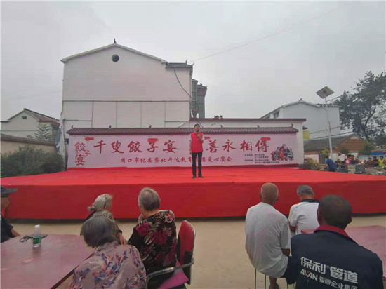 與此同時(shí),在演出現(xiàn)場附近的村委大院內(nèi),由周口市慈孝文化促進(jìn)會(huì)、北斗達(dá)教育集團(tuán)等組成的200多名志愿團(tuán)隊(duì)正忙得不亦樂乎,調(diào)餡、包餃子、下鍋、端盤,兩個(gè)多小時(shí)內(nèi),他們精心包出20000多個(gè)愛心水餃。11時(shí)30分,餃子宴正式開始,老人們一邊吃著水餃一邊觀看者演出,喜笑顏開,呈現(xiàn)出一片相親相敬的溫馨畫面。