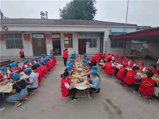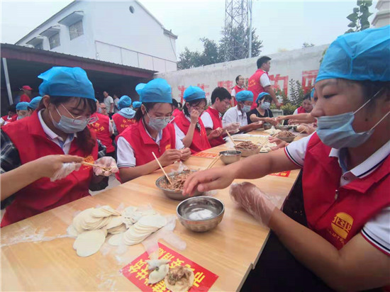 當(dāng)天上午,一場由周口市紀(jì)委監(jiān)委駐杜崗村工作隊(duì)聯(lián)合紅花鎮(zhèn)、杜崗村、周口北斗達(dá)教育集團(tuán)共同舉辦的孝老餃子宴,在該村文化廣場別開生面地拉來序幕。“村里所有60歲(含60歲)以上的老人今天中午都到文化廣場來吃餃子啊,市紀(jì)委和愛心企業(yè)來為我們包餃子啦……”8時(shí)剛過,杜崗村黨支部書記李長青就通過村里的大廣播每隔半小時(shí)播報(bào)一次,生怕哪位老人忘了這檔子事兒。