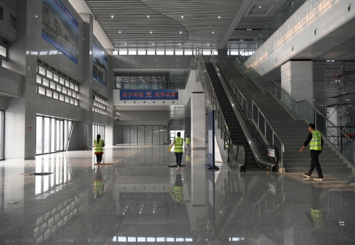 11月8日下午,記者再次來到鄭阜高鐵周口東站,看到一片熱火朝天的施工景象。伴隨著高鐵即將開通,工人緊張施工,施工進度一天一個樣,確保如期交付使用。圖一落客平臺進入鋪油階段。圖二站前廣場緊張施工中。圖三候車大廳進入精細化保潔。