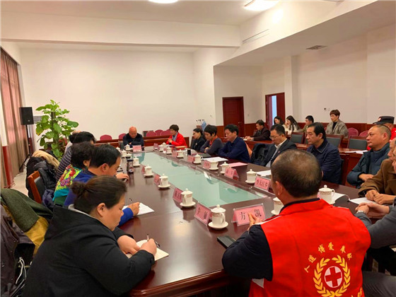 毛立營主持歡迎儀式,程維崢致歡迎詞,張翠霞匯報了近幾年西華縣紅十字會主要工作。