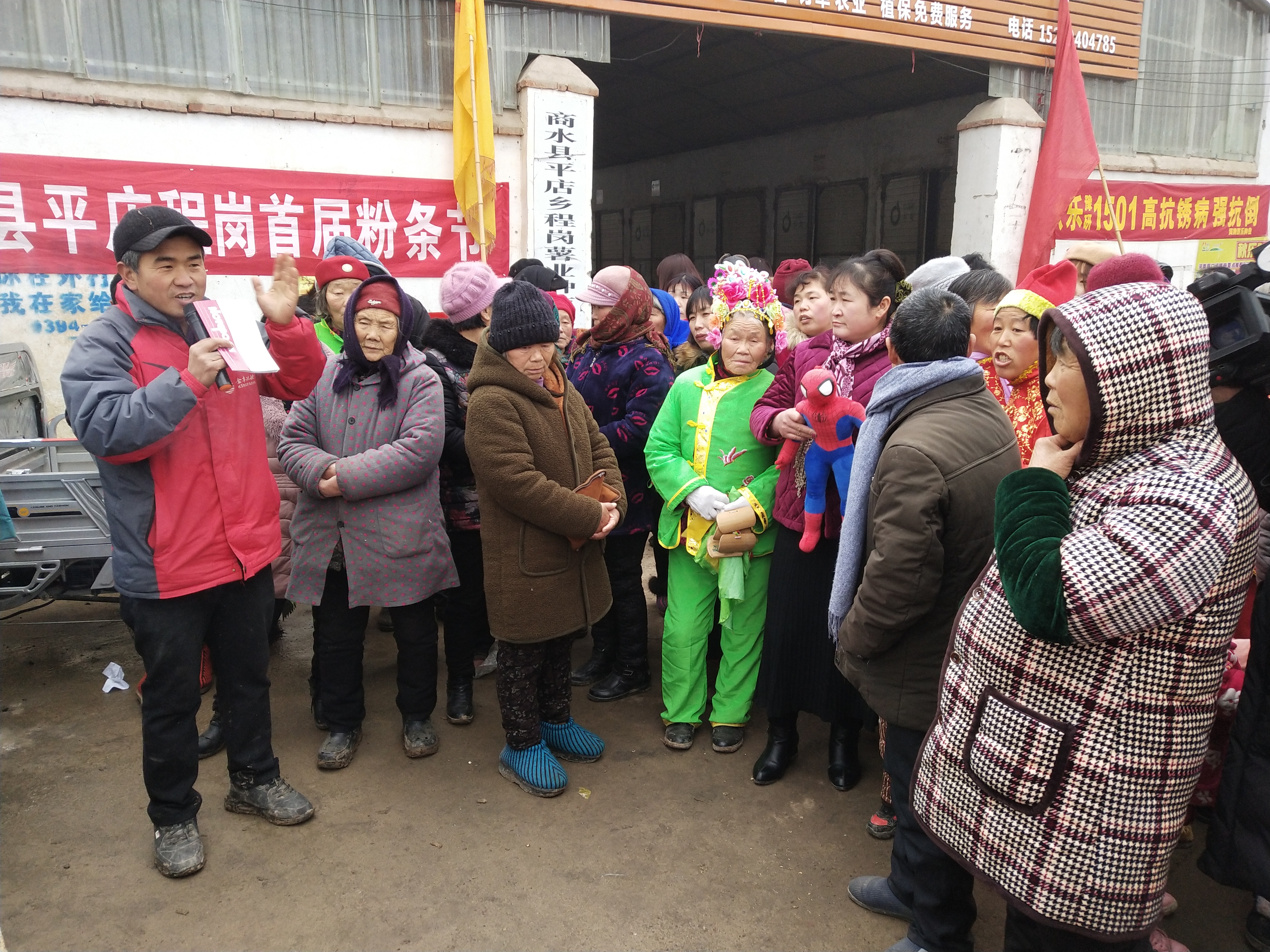 1月12日上午,商水縣平店鄉(xiāng)程崗村西側(cè)一合作社內(nèi)外彩旗飄揚(yáng)、人頭攢動、熱鬧非凡。一條“程崗村首屆農(nóng)民粉條節(jié)”的標(biāo)語在風(fēng)中飄動,十分醒目。