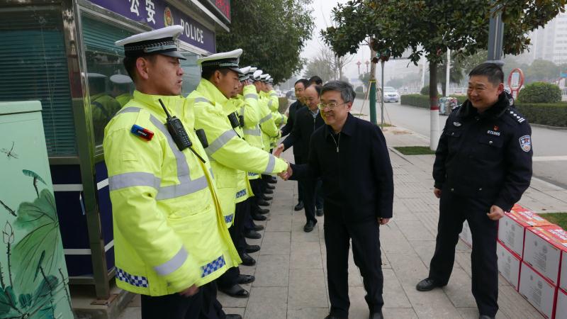 慰問(wèn)中,皇甫立新、劉國(guó)慶一行首先來(lái)到縣交警大隊(duì)城區(qū)中隊(duì)五岔路口執(zhí)勤點(diǎn),同正在執(zhí)勤的交通民警一一握手,并代表縣委、縣政府向交警大隊(duì)全體民警、協(xié)警一年來(lái)付出的努力和辛苦表示感謝和問(wèn)候,囑咐他們要注意安全,保重身體。在詳細(xì)了解了春節(jié)期間治堵保暢工作情況匯報(bào)后,皇甫立新對(duì)交警大隊(duì)全體民警和輔警在春節(jié)期間放棄和家人團(tuán)聚,舍小家顧大家,堅(jiān)守在道路交通安全管理崗位的工作態(tài)度,以及主動(dòng)作為,敢于擔(dān)當(dāng),無(wú)私奉獻(xiàn)、任勞任怨的工作作風(fēng)給予高度肯定。并希望大家在春節(jié)期間,繼續(xù)發(fā)揚(yáng)吃苦耐勞的精神,全力做好道路安全保障工作,確保春節(jié)期間全縣道路交通安全暢通,讓全縣人民度過(guò)一個(gè)平安、祥和的春節(jié)。同時(shí),縣交警大隊(duì)要進(jìn)一步做好執(zhí)勤民警后勤保障及防寒保暖工作,加強(qiáng)人員輪換上崗,切實(shí)保障公安交警切身利益,解決他們的后顧之憂(yōu)。