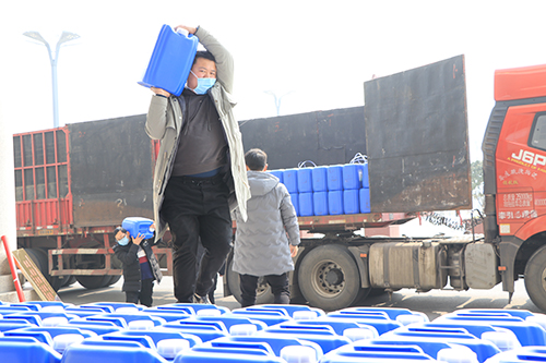 該公司總經(jīng)理馬媛媛介紹,她老家是周口的,在鄭州開辦的公司,公司業(yè)務(wù)主要是搞醫(yī)療物質(zhì)配送?!爱?dāng)前嚴(yán)峻的疫情形勢(shì)真得讓人很擔(dān)心,為了能夠給家鄉(xiāng)提供一些力所能及的幫助,公司特意購置了這批醫(yī)用物質(zhì)以解家鄉(xiāng)防控疫情的燃眉之急?!瘪R媛媛介紹,為了能在市場(chǎng)上購到這批貨物,公司從除夕晚上就開始聯(lián)系貨物,打了近百個(gè)電話,直到大年初四才在山東的一家公司聯(lián)系到貨源,排了6天隊(duì)之后,才購到10000斤消毒液、4000副醫(yī)用手套,貨到之后,公司馬不停蹄,立即拉了過來,讓這批貨物盡快派上用場(chǎng)。