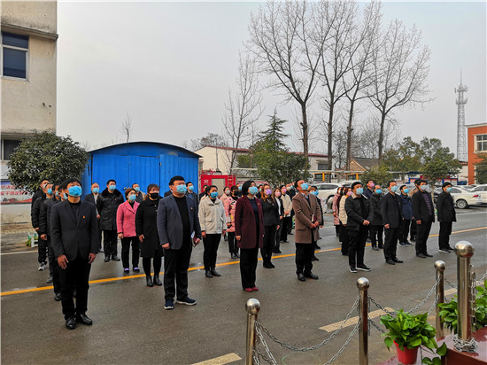 按照疫情防控復(fù)產(chǎn)復(fù)工工作安排,2月24日為恢復(fù)上班的第一天。8時(shí)許,西華縣聶堆鎮(zhèn)政府全體干部衣冠莊重、佩戴口罩、按照間隔1.5米的距離整齊地站在國旗臺(tái)前共同舉行隆重的升國旗儀式,以一種不一樣的方式打開新的工作局面。