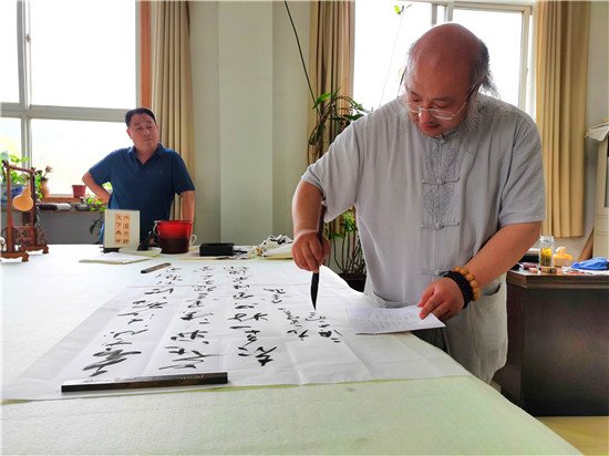 近日,當(dāng)代指書(shū)大家李云飛受邀到周口報(bào)業(yè)集團(tuán)書(shū)畫(huà)院進(jìn)行書(shū)法交流。交流現(xiàn)場(chǎng),李云飛揮毫潑墨,創(chuàng)作了多幅書(shū)法作品?;顒?dòng)結(jié)束后,周口報(bào)業(yè)集團(tuán)王社長(zhǎng)為李云飛頒發(fā)了聘書(shū),聘請(qǐng)李云飛為周口報(bào)業(yè)集團(tuán)書(shū)畫(huà)院名譽(yù)院長(zhǎng)。