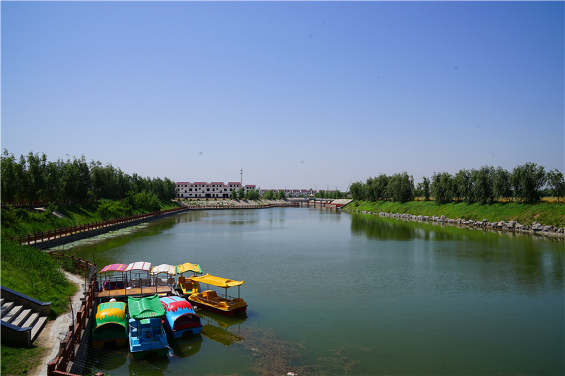 采風(fēng)團記者走進鄲城縣秋渠鄉(xiāng)靳莊村,只見綠樹掩映著干凈整潔的道路,楊柳倒映在荷塘碧波……變化始于2019年5月份。秋渠鄉(xiāng)黨委書記梁輝說,靳莊村于去年5月份被列為鄲城縣“六村共建”試點村后,村里24個廢坑塘,有的被改造成湖泊,有的被墊平作為宅基地由村里拍賣,所得收入用于村里發(fā)展建設(shè)?!傲骞步ā本褪恰拔拿鞔濉薄捌桨泊濉薄靶l(wèi)生村”“產(chǎn)業(yè)富民村”“美麗宜居村”“黨建示范村”一體建設(shè)。
