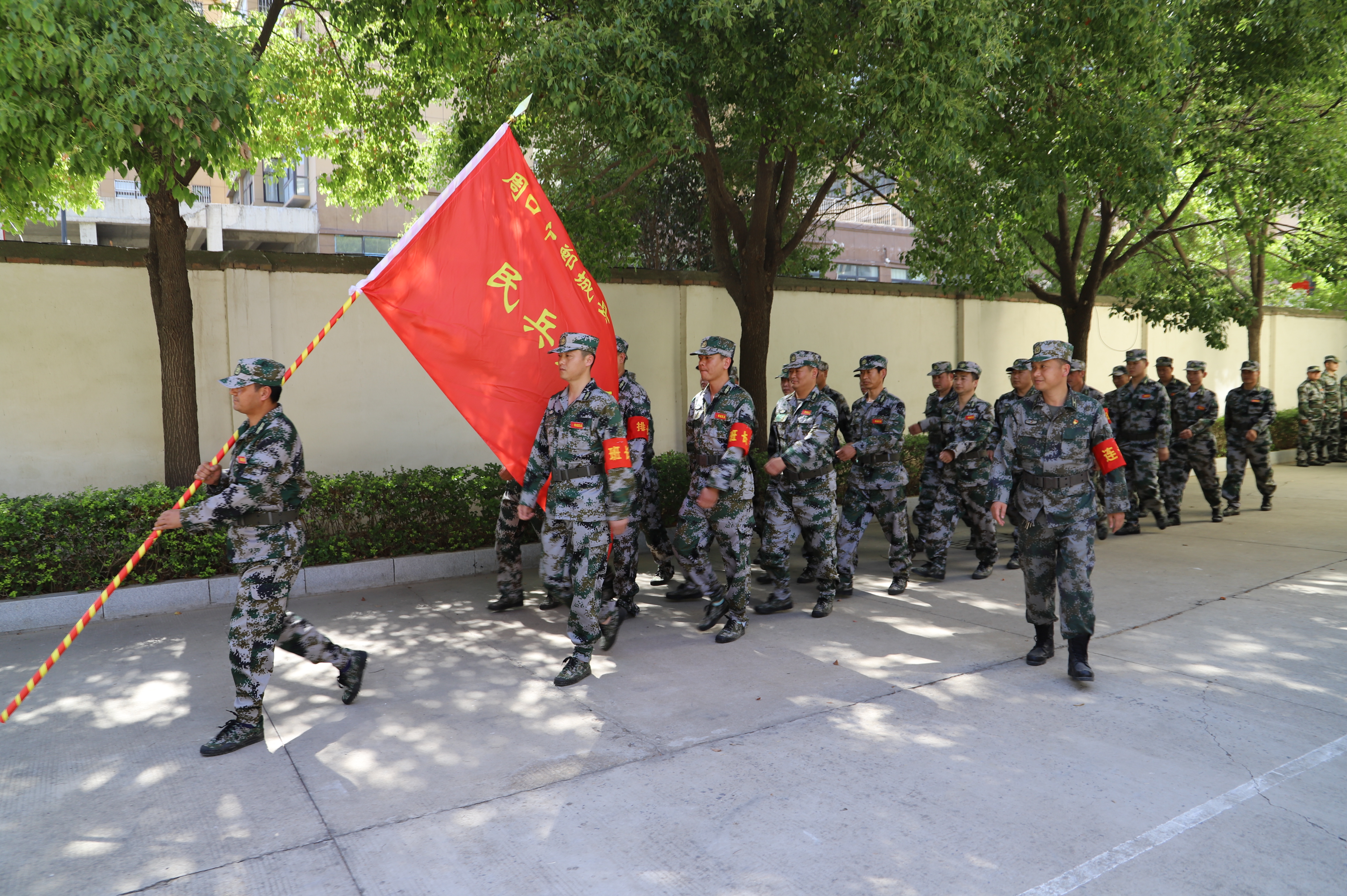 軍哨嘹亮、全連集結(jié)。點驗時刻,全體民兵聽到哨聲迅速集合、列隊完畢,操場上、烈日下,民兵們不畏烈日如火、不顧汗流浹背,整理隊形、整齊劃一。