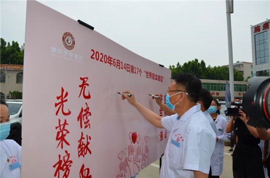 6月14日是第17個“世界獻血者日”,今年的主題是“安全血液、拯救生命”。為號召更多的人加入到無償獻血的隊伍,6月11日上午,市中醫(yī)院開展“第17個世界獻血日”無償獻血活動。市政協(xié)副主席、市中醫(yī)院院長程維明,醫(yī)院黨委書記劉廣明,副院長魯恒心、 史衛(wèi)東,工會主席孫俊,市中心血站站長王峰、副站長申飛等領導及來自醫(yī)療、護理、門診、行政后勤人員300余人參加活動。