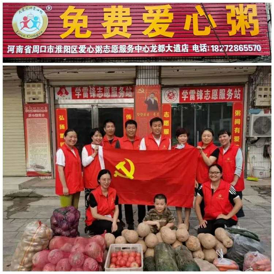 7月4日下午,在歡慶中國共產(chǎn)黨誕辰99周年之際,中共周口市淮陽區(qū)人民醫(yī)院行政后勤黨支部黨員志愿者馬道興、常杰、劉春蘭、楊莎莎、張琴、劉娟、任妍、朱琳月、郭秀榮一行10人在支部書記楊敬濤同志帶領(lǐng)下,再次來到菜市場,買來南瓜、冬瓜、胡蘿卜、洋蔥、土豆、黃瓜、西紅柿等新鮮時蔬送到了淮陽區(qū)龍都大道免費愛心粥屋,開展黨員志愿服務(wù)主題黨日活動,以別樣的方式慶祝黨的99華誕。