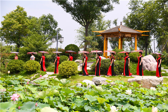 周口森林公園經(jīng)過近年的建設(shè)已經(jīng)成為市區(qū)休閑的一處好去處,風景優(yōu)美,園林幽深,目前,盡管森林公園附近道路施工,進出還不方便,但是仍吸引著很多居民前去休閑游玩,愛美的大媽們更是在這里秀一把,7月16日上午,來自市區(qū)模特隊的大媽們,穿著靚麗的旗袍,在荷葉飄香、假山園林秀林深處,開心地進行一場模特秀。