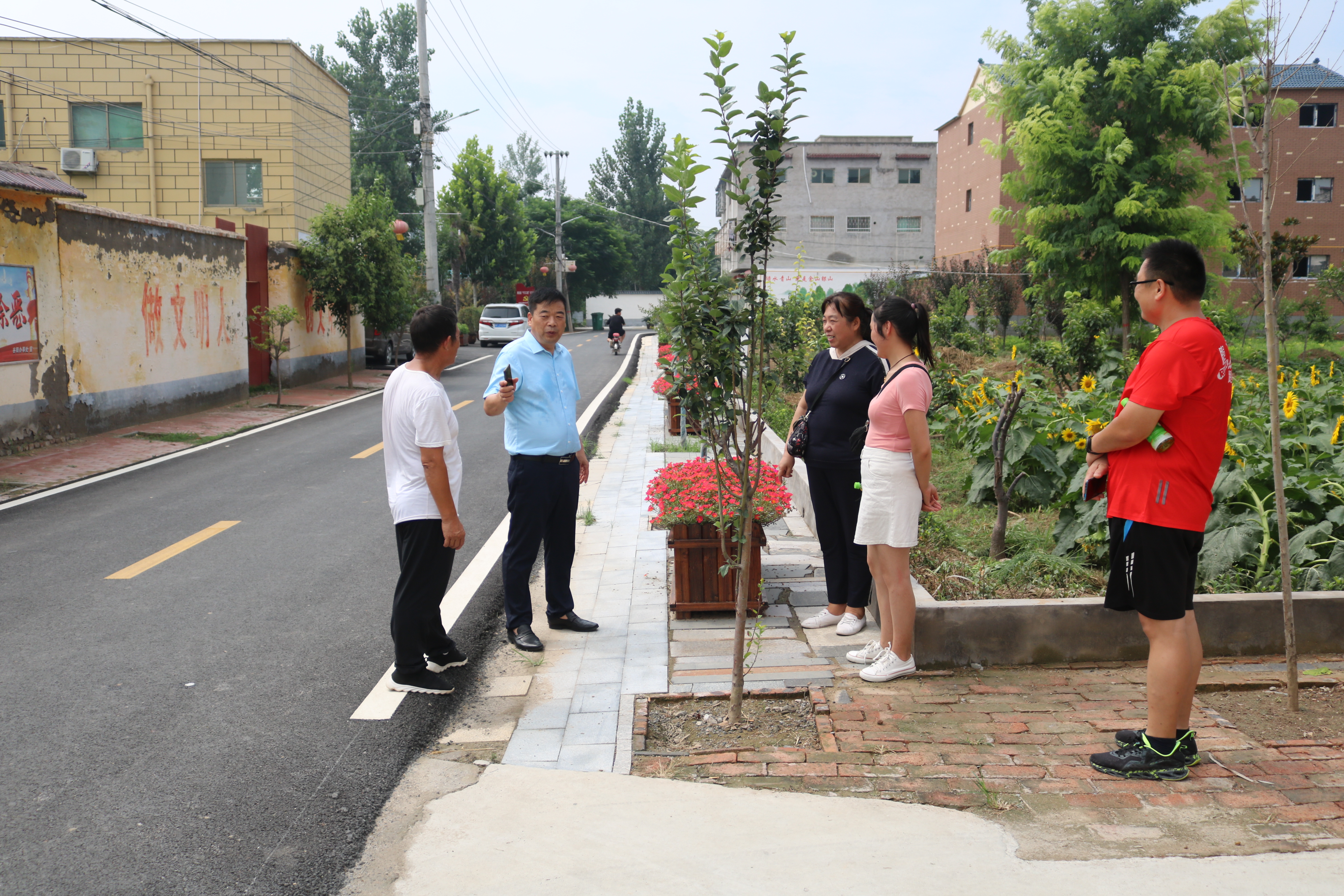 “我們先從整治道路坑塘空宅院、清理門前屋后的‘四大堆’開始,充分利用原生態(tài)的自然資源,從凈化、美化、亮化做起,放魚苗、栽果樹、種油葵鮮花,搞特色產(chǎn)業(yè)、種植養(yǎng)殖,以生態(tài)文明觀改造傳統(tǒng)農(nóng)業(yè),以生態(tài)文化提升鄉(xiāng)村文明,以生態(tài)文明統(tǒng)領鄉(xiāng)村振興。讓群眾有好看的景色、有休閑娛樂的地方?!绷_超說,“六村共建”活動開展前,村里的狀況是散、亂、差,村兩委班子就想著怎么才能改變村里的現(xiàn)狀,經(jīng)過一年多的治理,村里的狀況有了明顯的改善。只有盯住頑疾,補齊短板,美麗村莊才能既有“面子”,更有“里子”。通過著力完善垃圾處理、污水處理、公共服務等配套設施,持續(xù)提升農(nóng)村環(huán)境質量,留下鄉(xiāng)情鄉(xiāng)?,才能真正讓人記得住鄉(xiāng)味、留得下鄉(xiāng)愁。