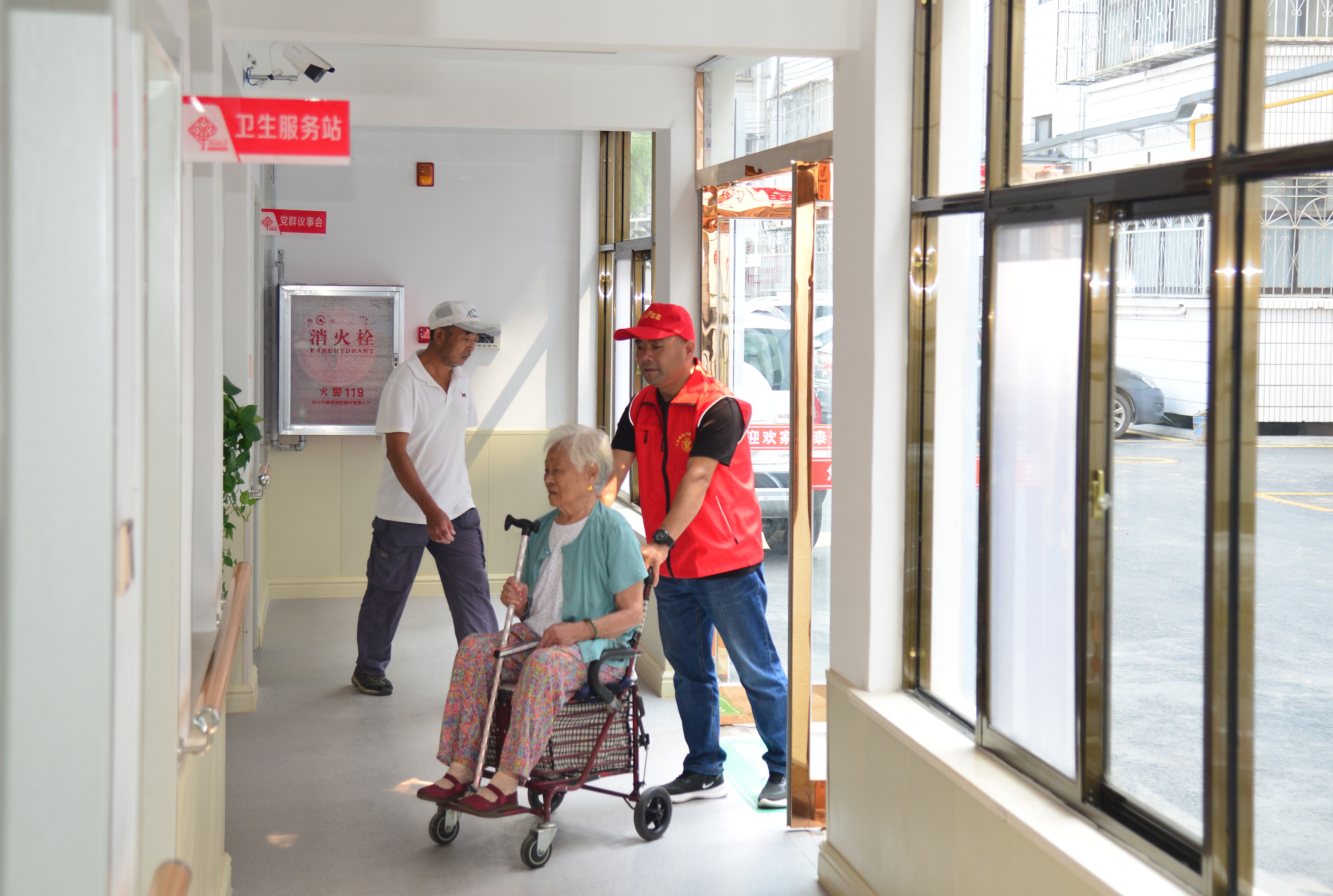 川匯區(qū)西楊莊社區(qū)志愿者接行動(dòng)不方便的居民到社區(qū)服務(wù)中心參加活動(dòng)