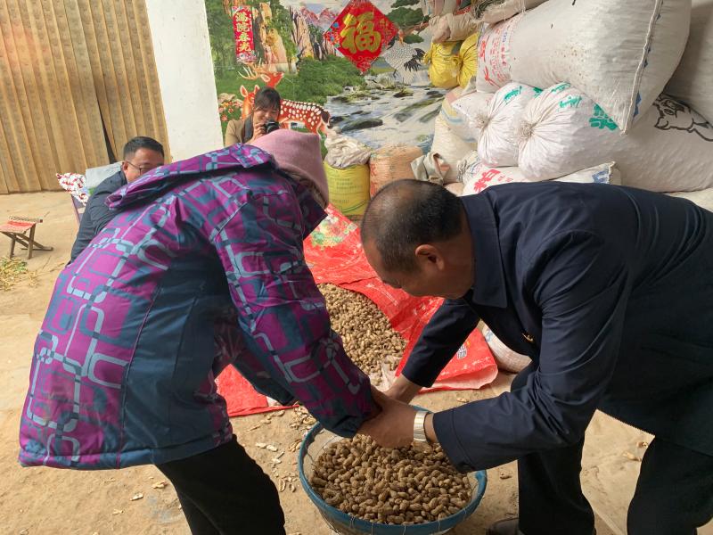 老人看身邊的幾個來看望她的人一直在那站著,心里很不是滋味,就急忙在花生堆里揀出來一些飽滿的花生,雙手捧著讓他們吃花生,誰不吃花生她都不依。一時間,這個農(nóng)家院里充滿著陣陣笑聲。
