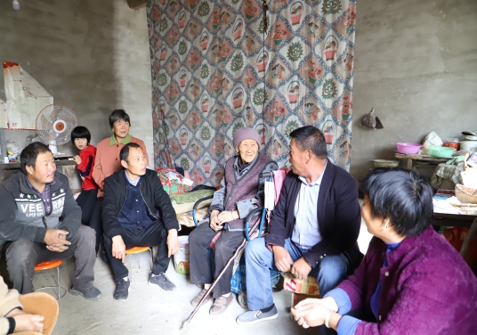 (圖為鄭德民和村干部一起為92歲特困供養(yǎng)老人孫友芝建設的兩間房屋)