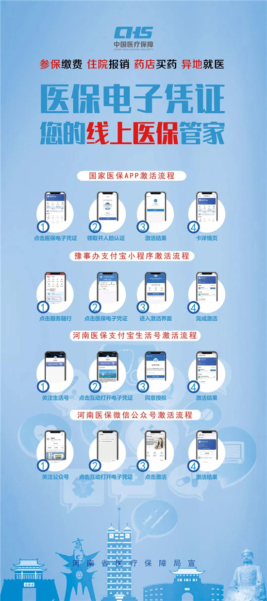 醫(yī)保電子憑證不依托實體卡,領取方式簡單,參保人員可以直接通過國家醫(yī)保App或者通過微信、支付寶,以及經(jīng)由國家醫(yī)保局和河南省醫(yī)療保障局認證授權(quán)的第三方渠道,自助進行認證后激活使用,不需要到服務大廳領取和激活。