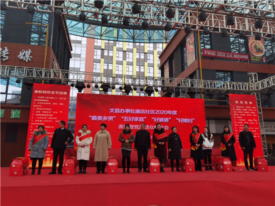 為大力弘揚中華民族傳統(tǒng)美德,深入挖掘康店社區(qū)尊老敬孝、勤儉持家的先進典型,積極引導廣大居民群眾移風易俗、孝老愛親,促進家庭和睦、社會和諧,11月27日,城鄉(xiāng)一體化示范區(qū)文昌辦事處康店社區(qū)舉行“最美鄉(xiāng)賢”“好婆婆”“好媳婦”“五好家庭”表彰大會暨文藝演出活動。據(jù)悉,經(jīng)社區(qū)村民推薦,康店社區(qū)評選出的14位“最美鄉(xiāng)賢”、7戶“五好家庭”、5位“好婆婆”、7位“好媳婦”現(xiàn)場接收表彰。